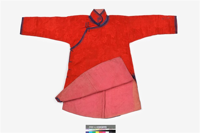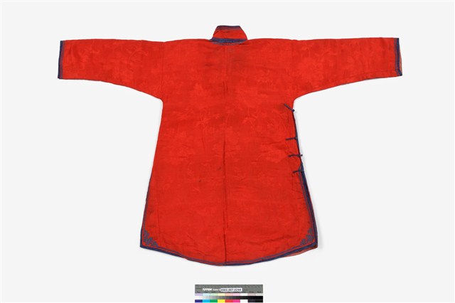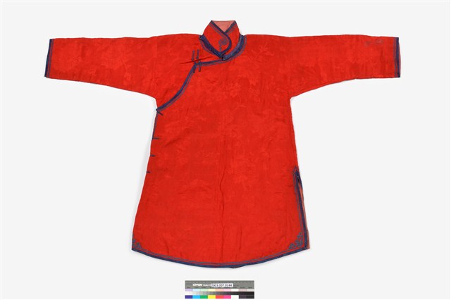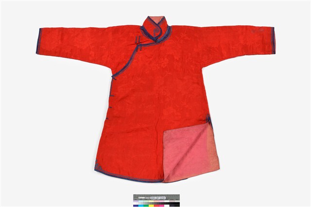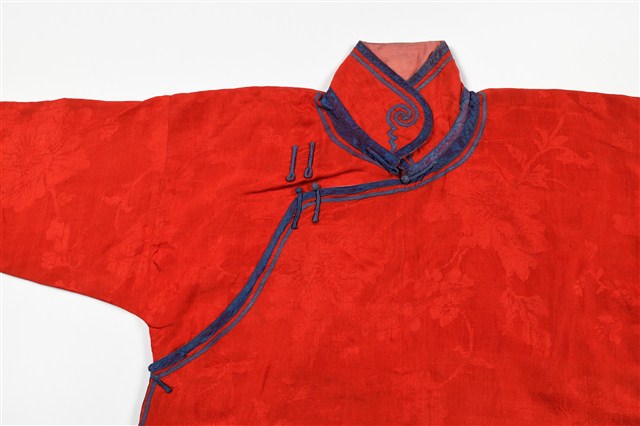 2003.007.0244 紅絲質大襟四關鑲女衫