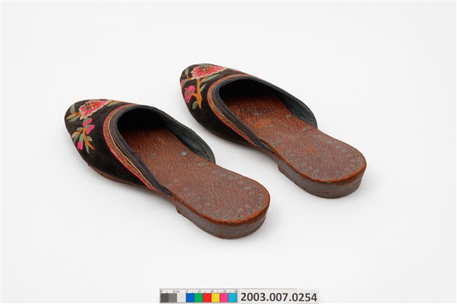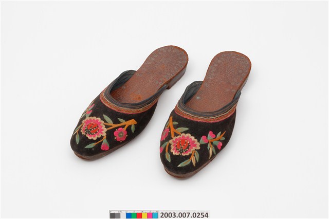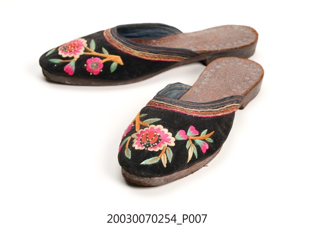 2003.007.0254.0001 黑地繡花客家拖鞋左足