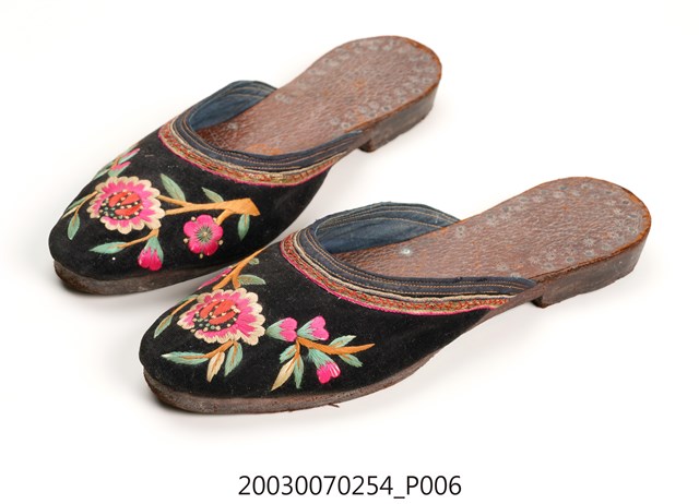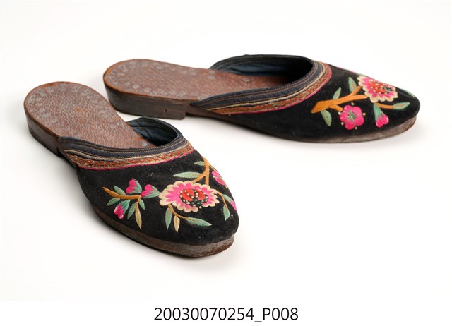 2003.007.0254.0002 黑地繡花客家拖鞋右足