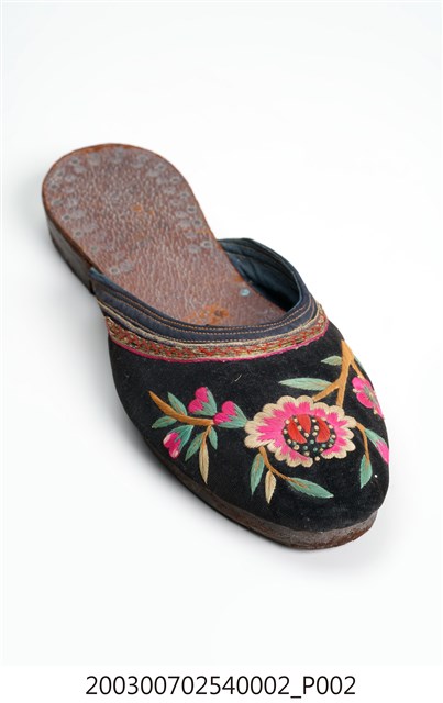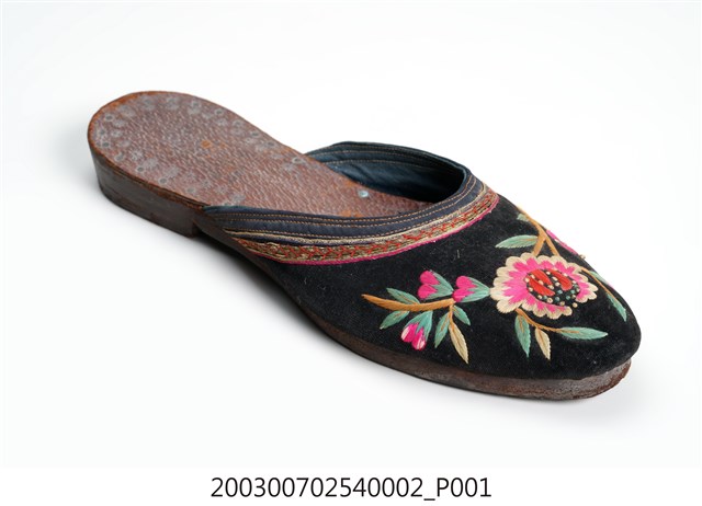 2003.007.0254.0002 黑地繡花客家拖鞋右足