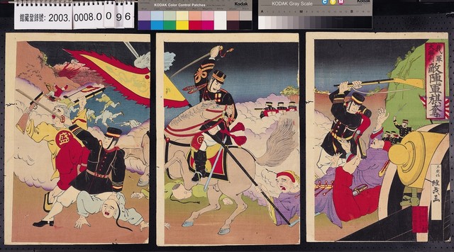 2003.008.0096 我軍大勝利奪取敵陣軍旗圖3幅1組
