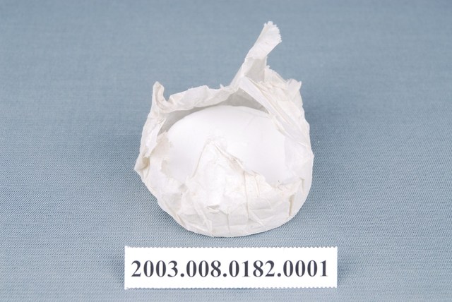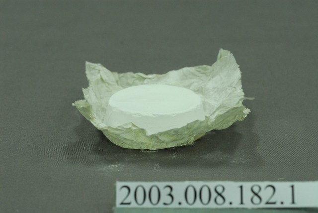 本文物為飛馬白粉塊,新竹製造,內無含鉛之成分。白粉是早期婦女化妝用的粉底,又被稱為香粉或膨粉。新竹因氣候乾燥適合生產白粉,1925年當地開始生產無鉛白粉,日治時期當地有上百家製造白粉的業者,戰後由於貨物稅及外國化妝品進口競爭逐漸沒落。女性臉上的妝扮為其對特定生活之想像,相對地女性之美也時常受限於社會傳統價值觀,妝扮女性的化妝品及其附屬產品,則體現了社會審美觀和科技的變動。