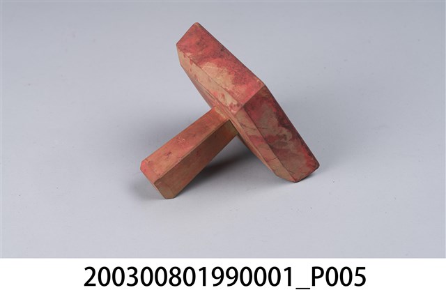 本件為廣澤尊王法印,材質木頭製作,形體方形,印鈕長柱形。法印是指鐫刻神祇名諱或符文的印璽,印面通常為單面、正方形,印身上方有時雕有印紐,印紐以獅形的辟邪獸最常見。