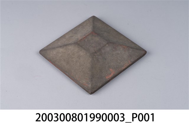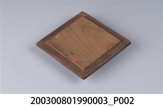 本件為廣澤尊王法印之印盒上蓋,材質木頭製作,形體方形,四坡式收尾,頂端為一方形以彰顯穩重之樣式。上蓋微有擦損。