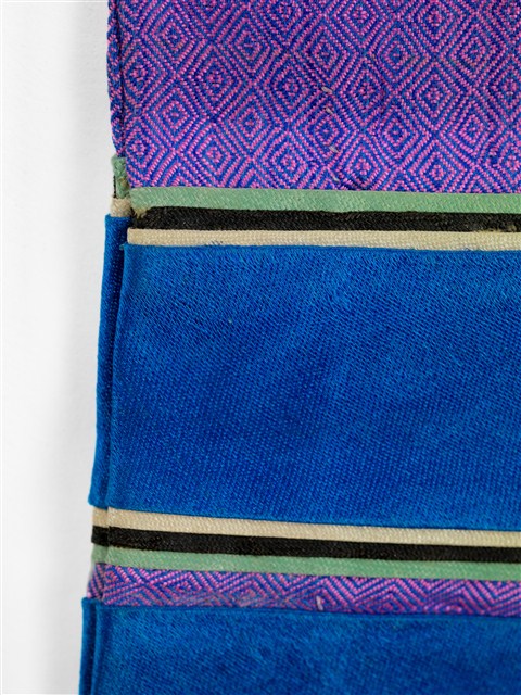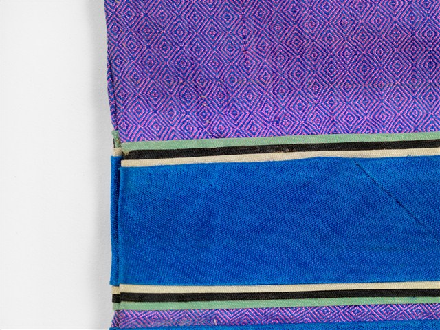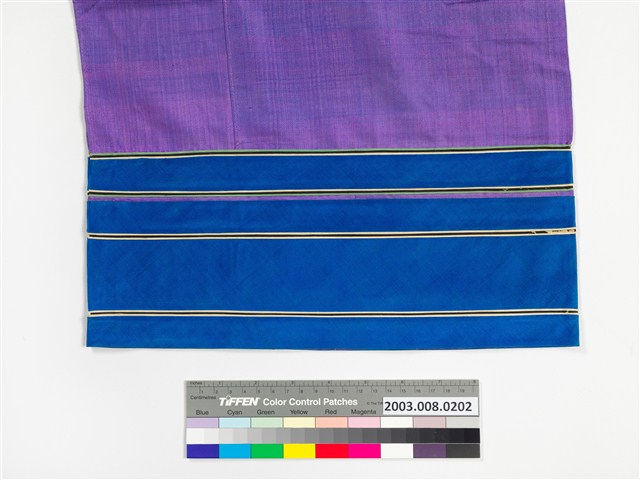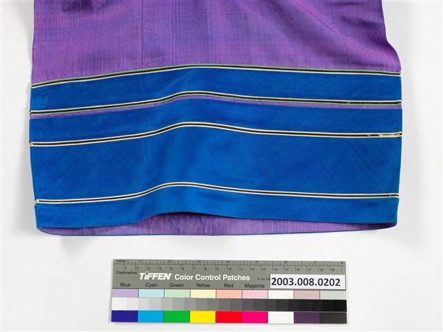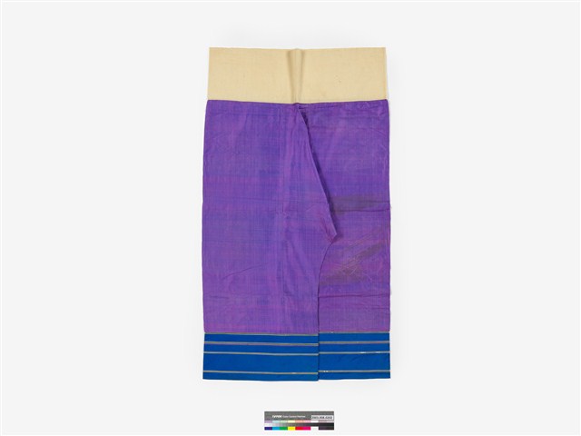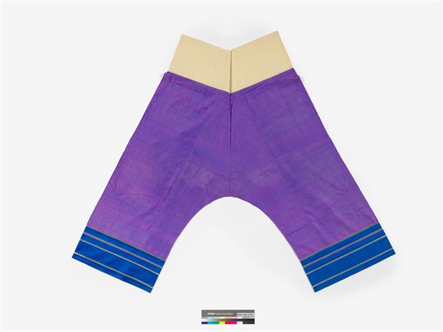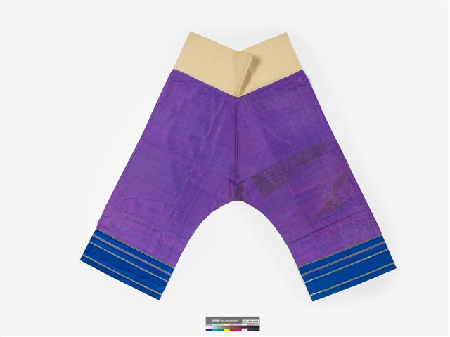 2003.008.0202 紫色絲質菱格織紋條紋飾邊合襠女褲