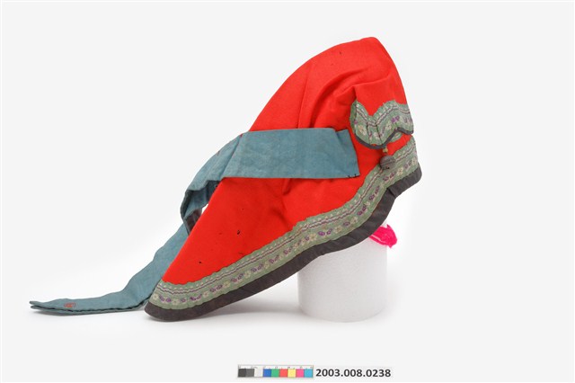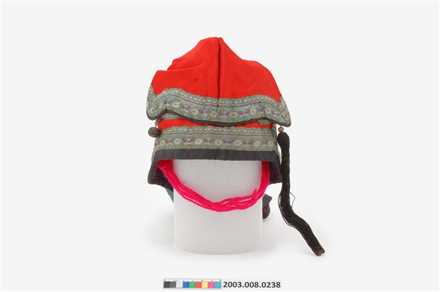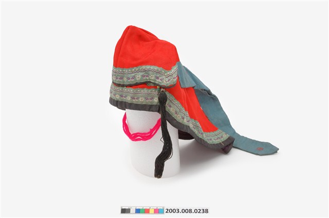 2003.008.0238 大紅地彩織厝脊頂風帽