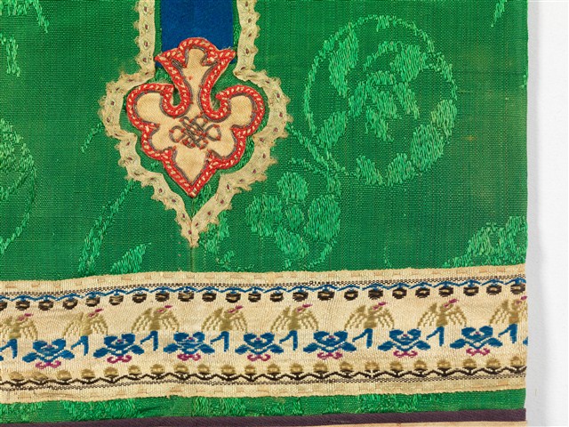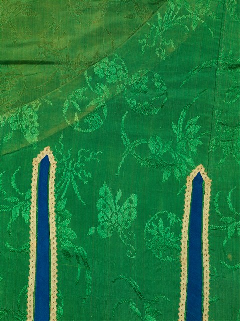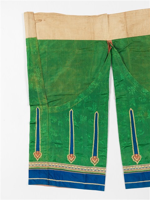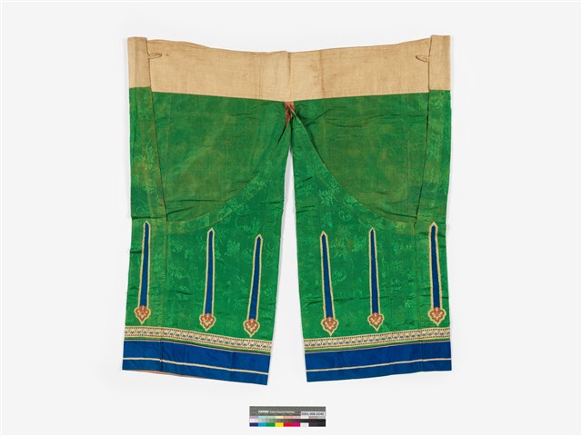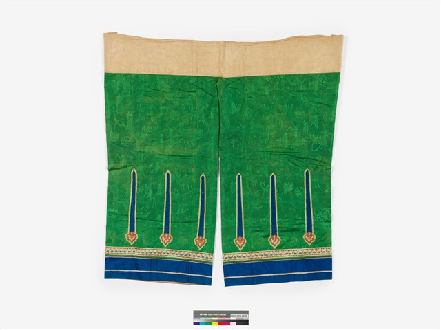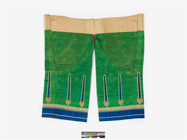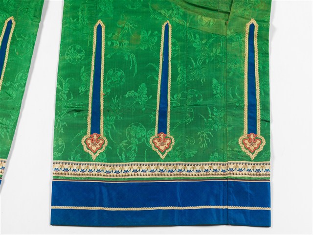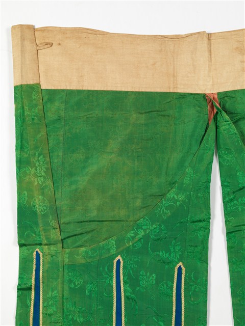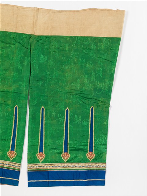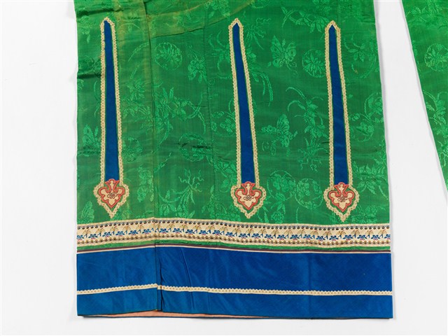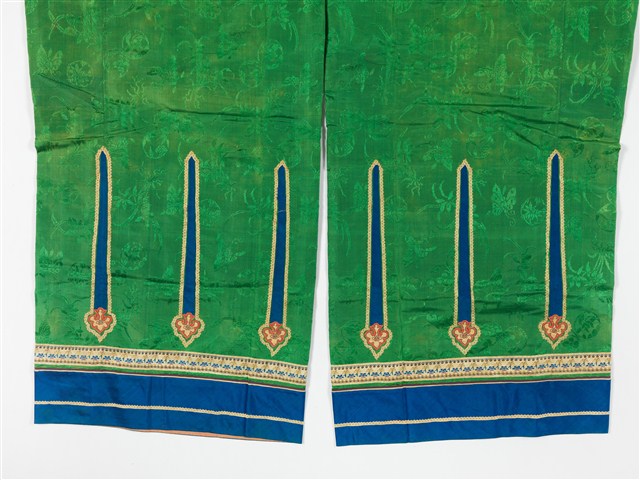 2003.008.0240 綠色絲質緹花劍帶條紋飾邊開襠女褲