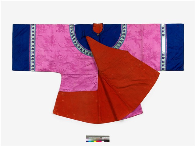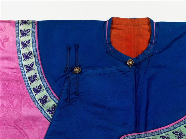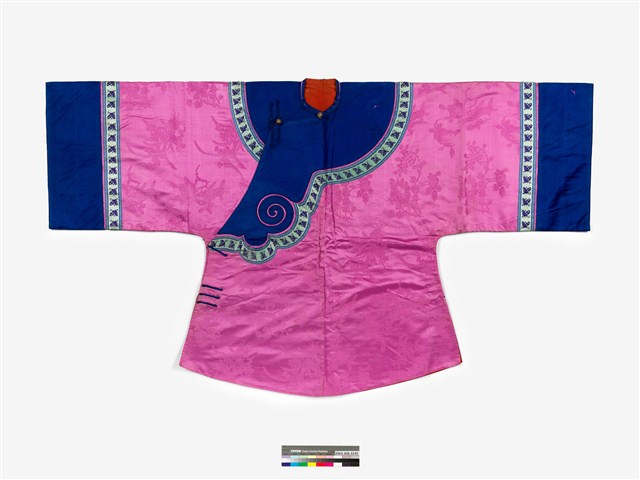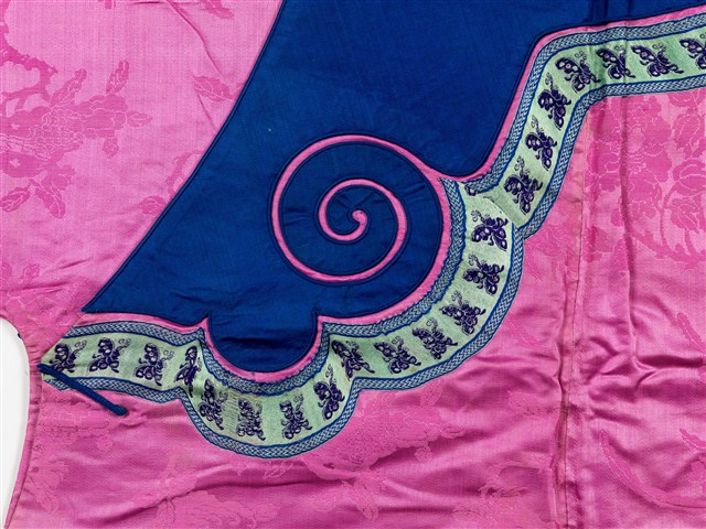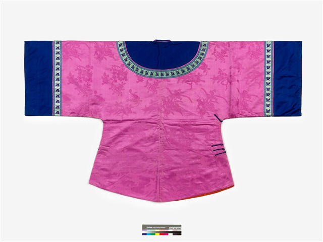 2003.008.0245 紫紅緹花絲質大襟鑲緄女衫