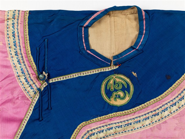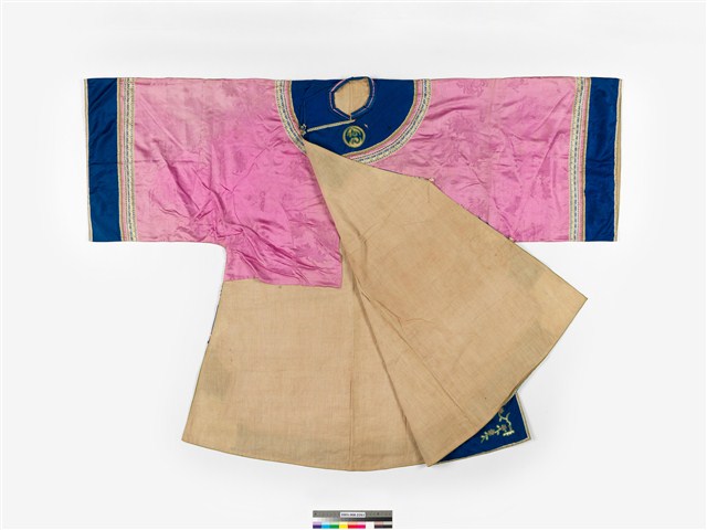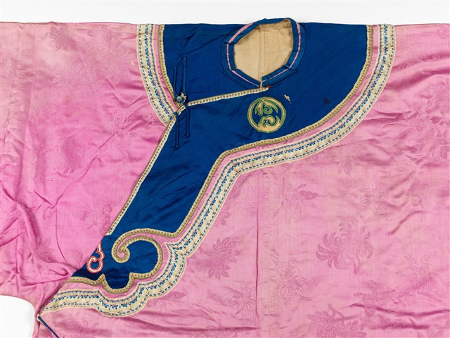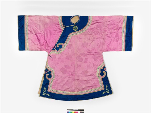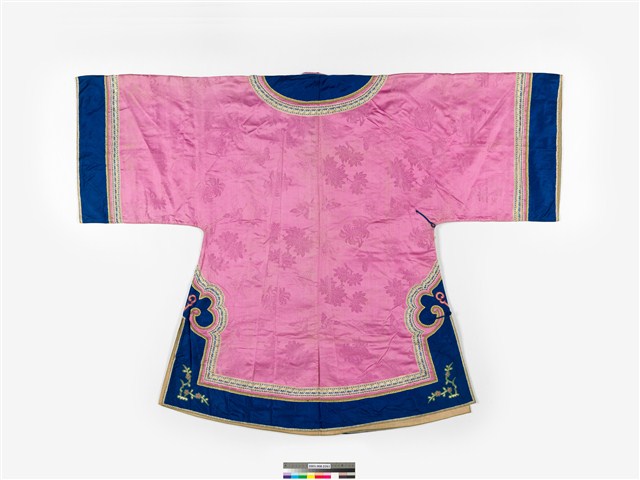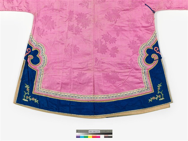 2003.008.0261 粉紅絲質緹花大襟鑲緄女衫