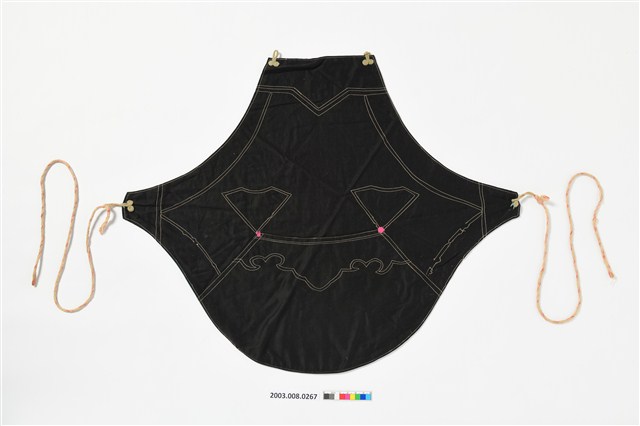2003.008.0267 黑緞地素面下端寬形附綁帶兜