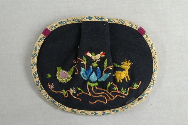 2003.008.0283 黑地牡丹紋腰圓荷包