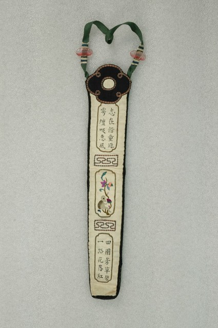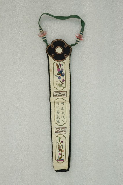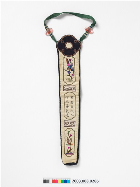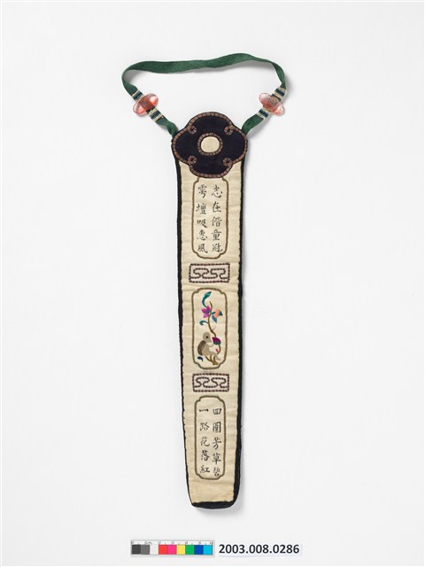 2003.008.0286 白棉地繡花鳥紋詩文扇袋