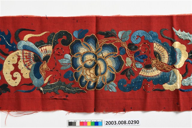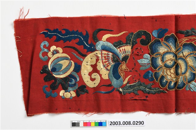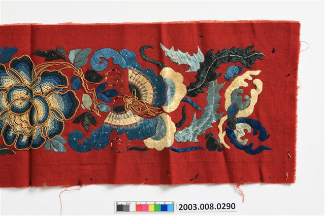 2003.008.0290 紅毛地蝴蝶牡丹彩繡袖口