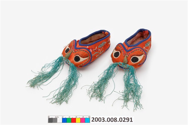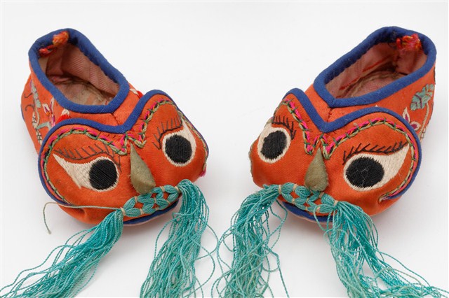 2003.008.0291.0002 紅地虎頭繡花童鞋右足
