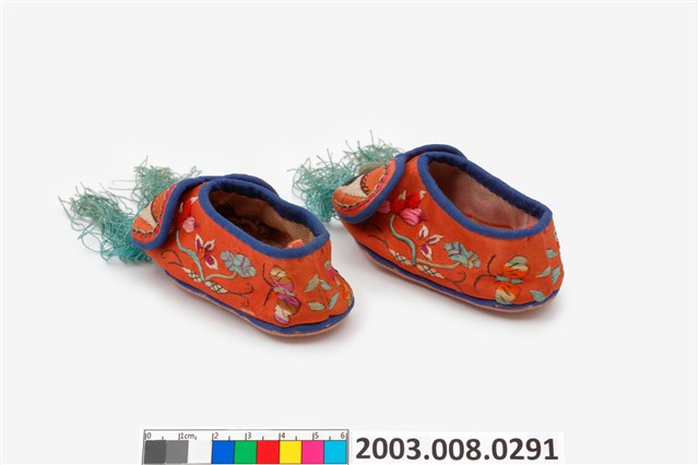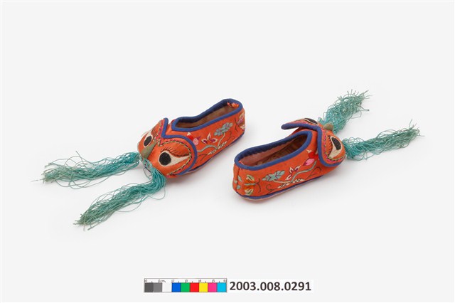 2003.008.0291.0001 紅地虎頭繡花童鞋左足