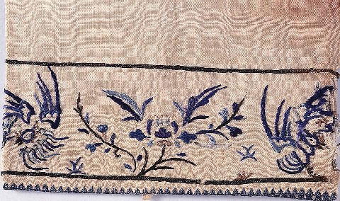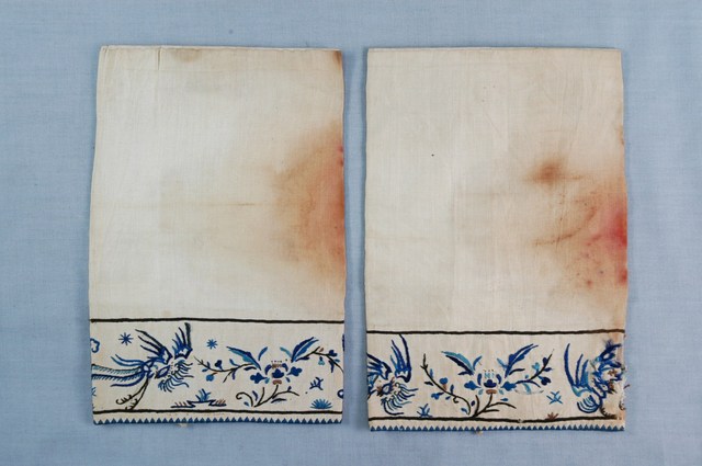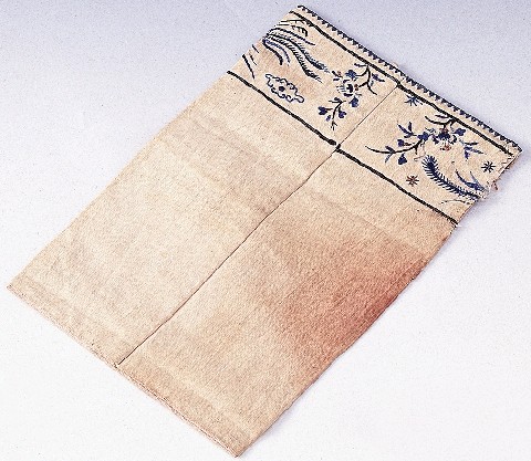 2003.008.0305 白地三藍繡花鳥紋飾褲組