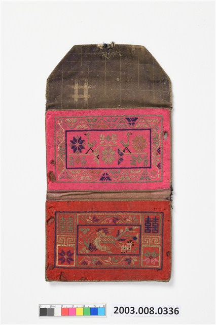 2003.008.0336 十字繡雙喜得祿紋兩摺褡褳荷包