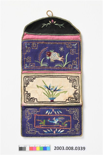 2003.008.0339 魚藻花鳥紋釘金繡三摺褡褳荷包