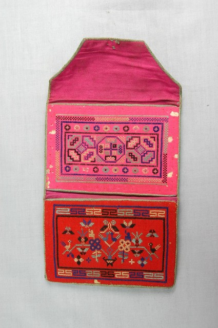 2003.008.0342 十字繡富貴平安兩摺褡褳荷包