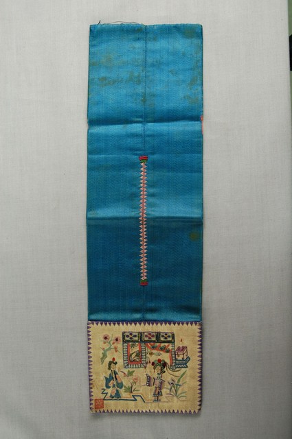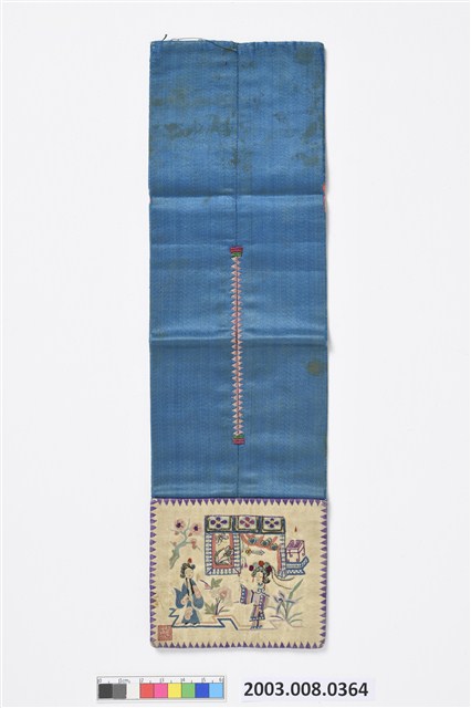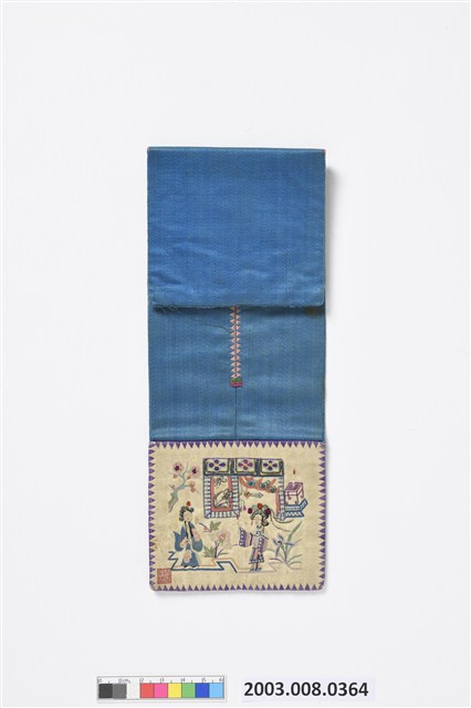 2003.008.0364 米白緞地人物彩繡褡褳