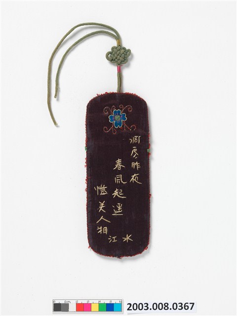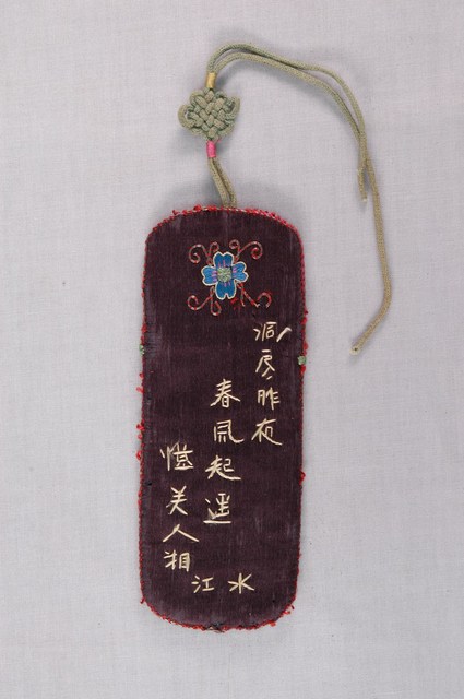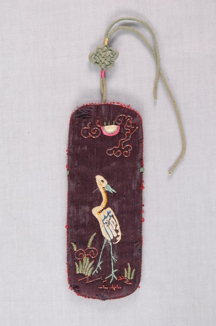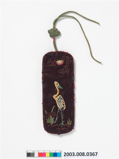 2003.008.0367 黑綢地繡白鷺鷥紋詩文眼鏡袋