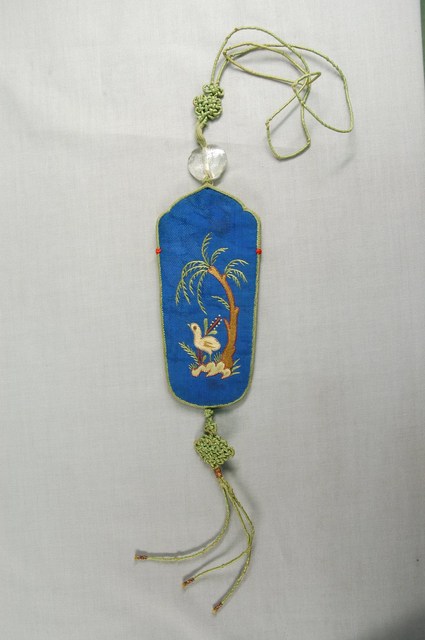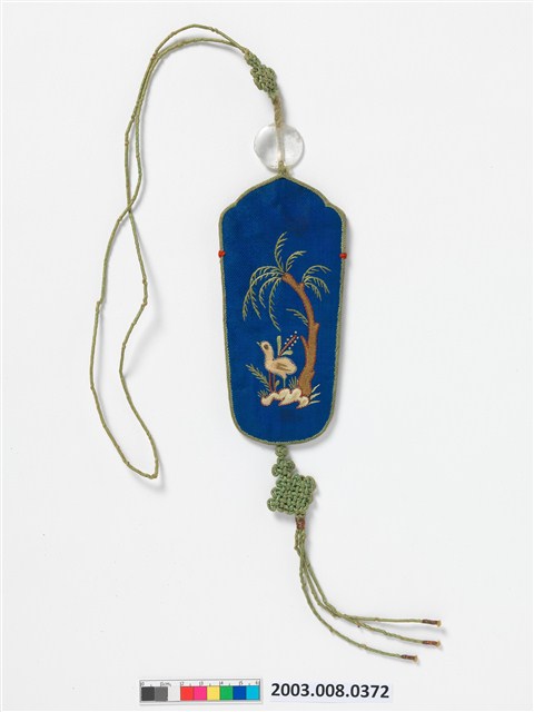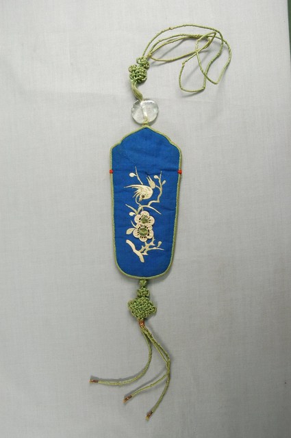 2003.008.0372 藍棉地繡花鳥紋眼鏡袋