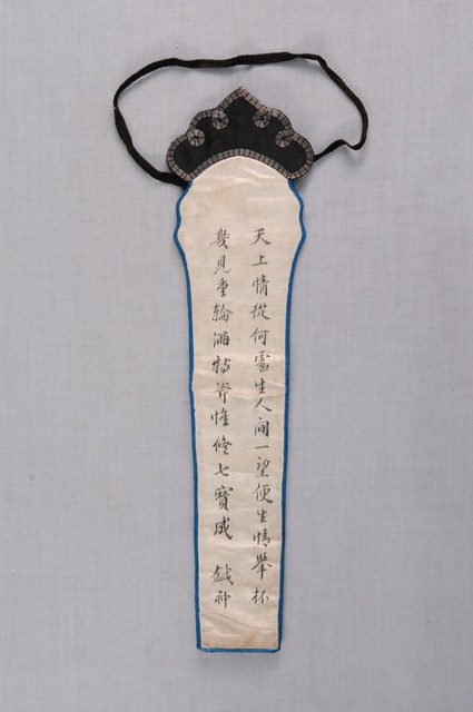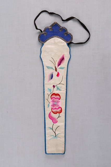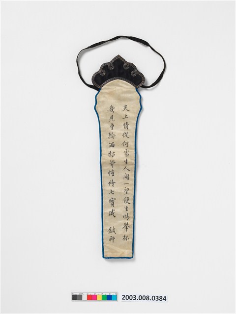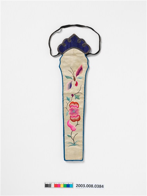 2003.008.0384 白綢地繡花蝶詩文扇袋