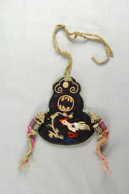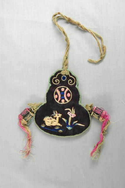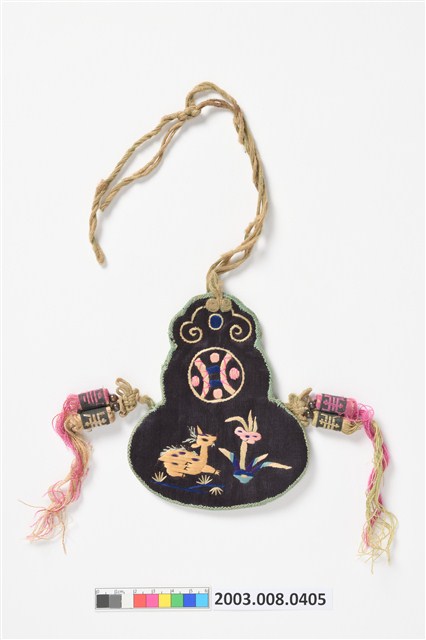 2003.008.0405 黑底緞面繡葫蘆形香袋