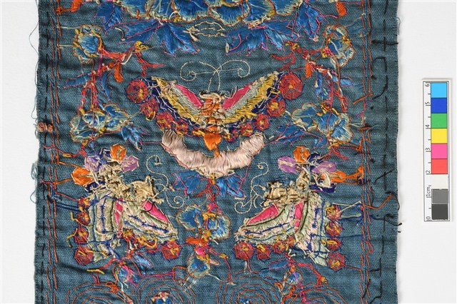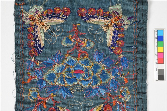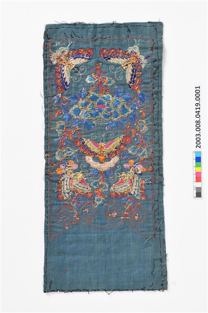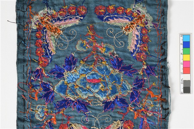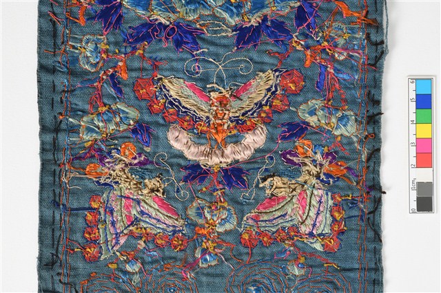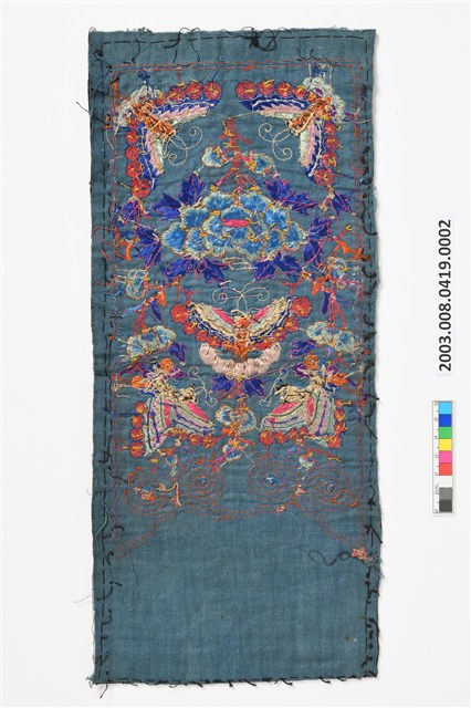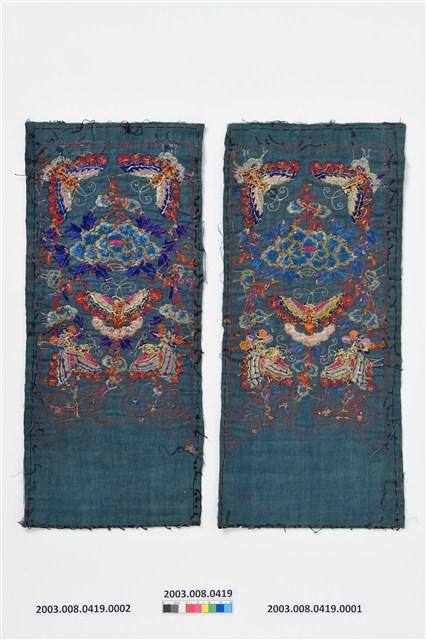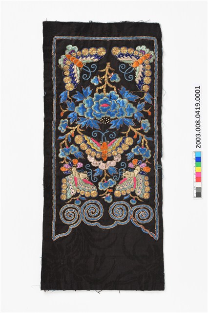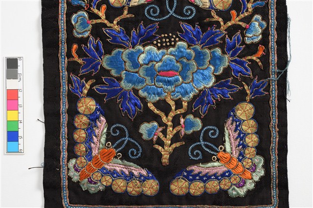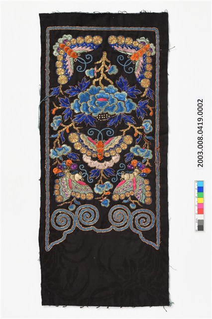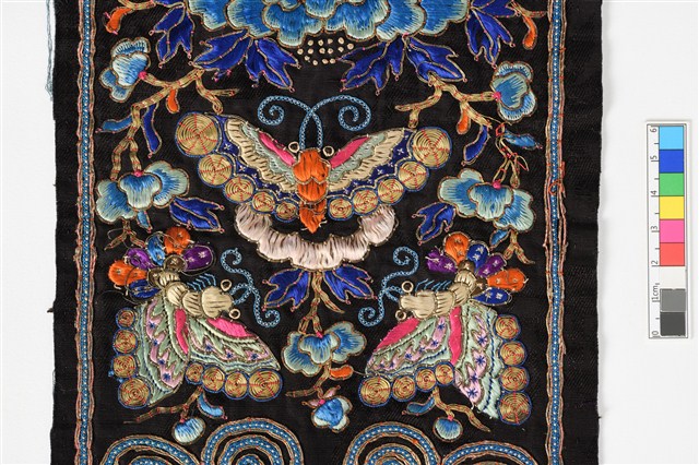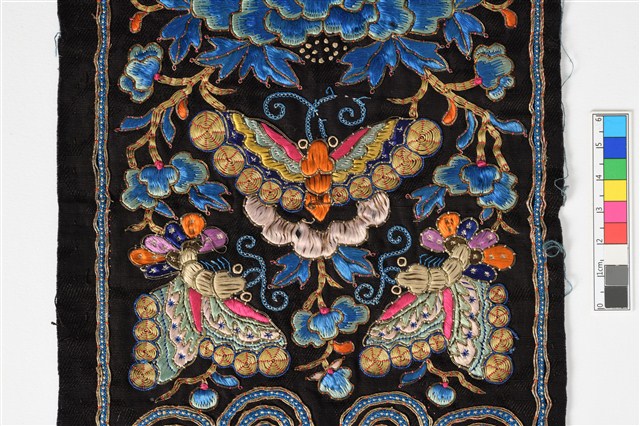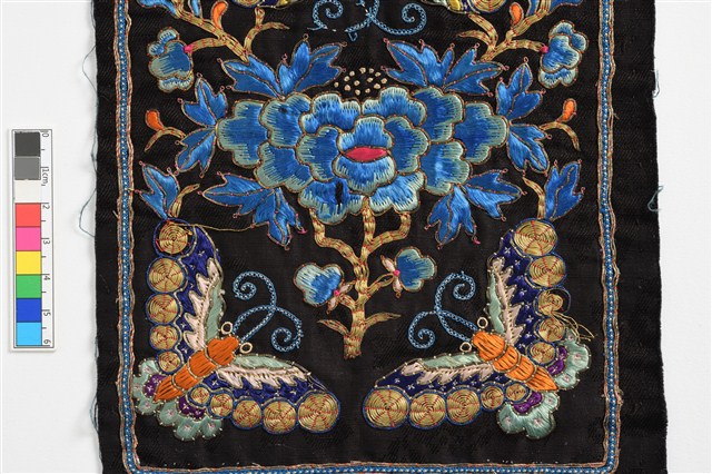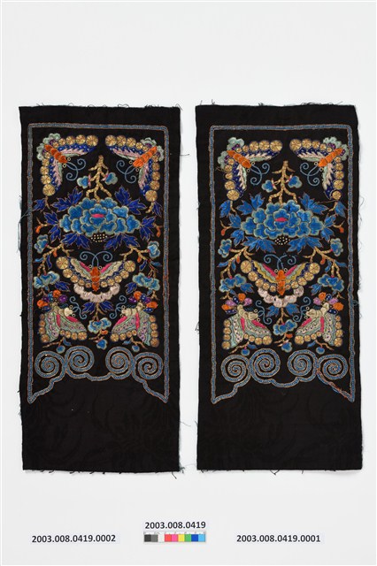 2003.008.0419 黑絲質蝴蝶牡丹彩繡袖口組