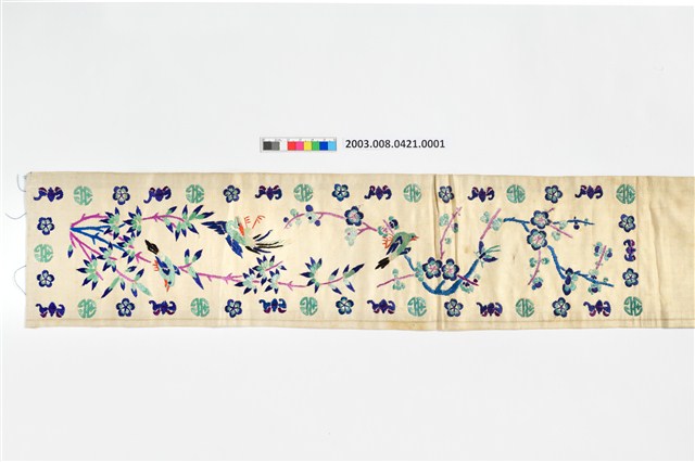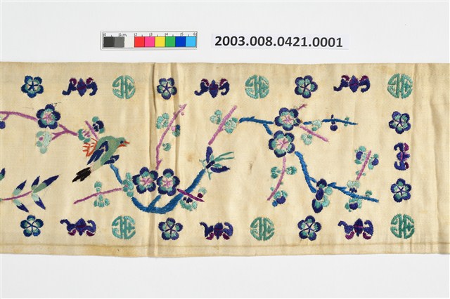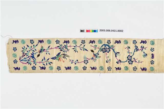 2003.008.0421 米黃絲緞花鳥彩繡袖口組