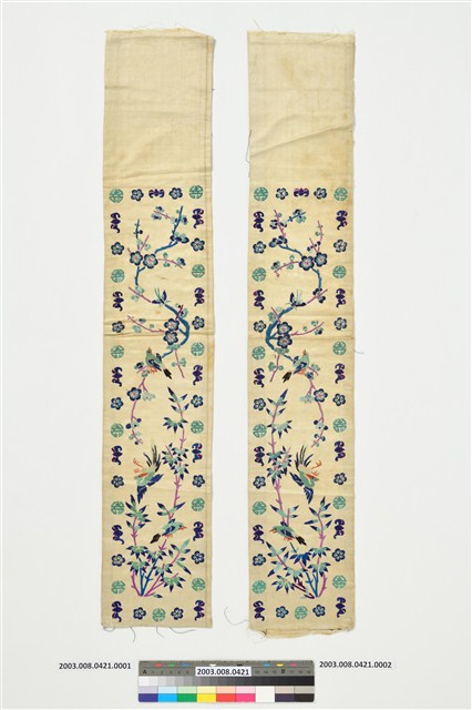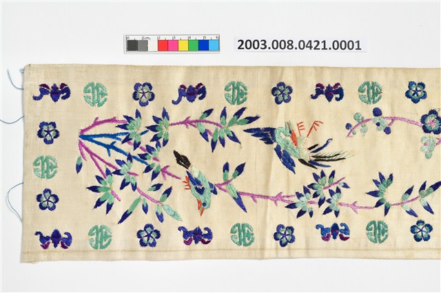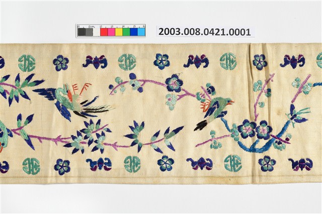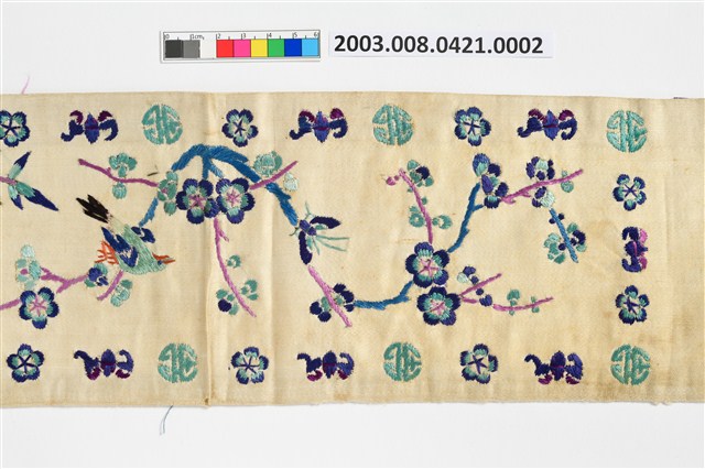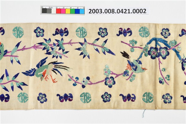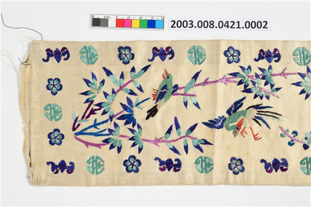 2003.008.0421.0001 米黃絲緞花鳥彩繡袖口