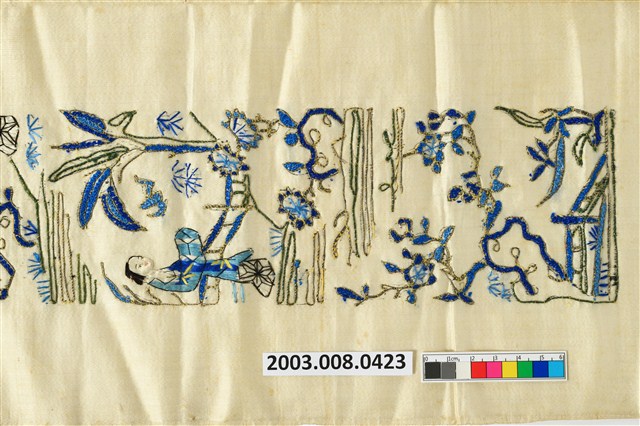 2003.008.0423 米白絲緞人物彩繡袖口組