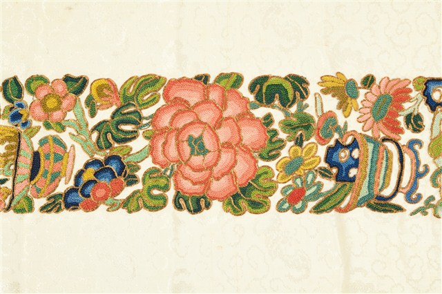 2003.008.0424.0002 米白絲質花卉彩繡袖口