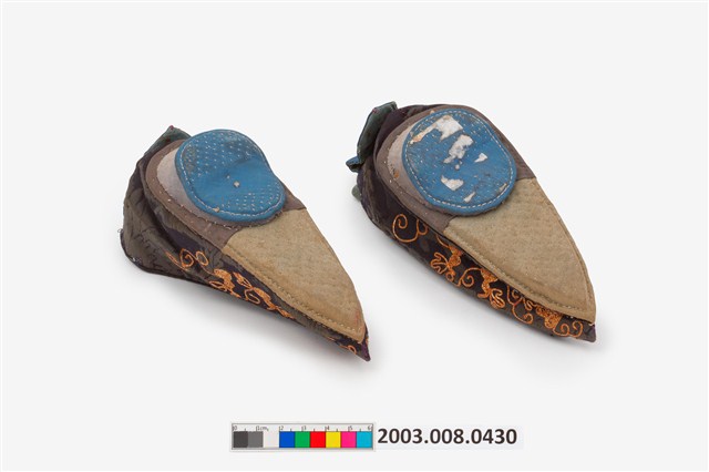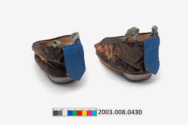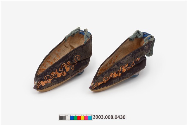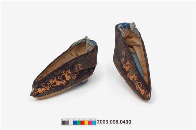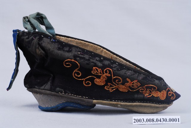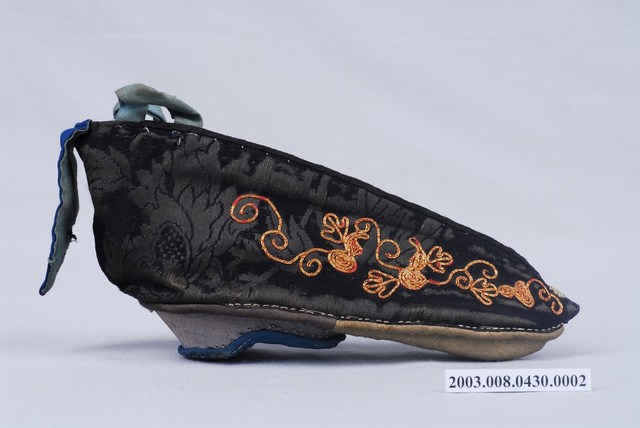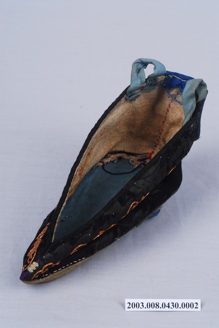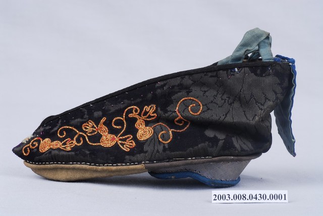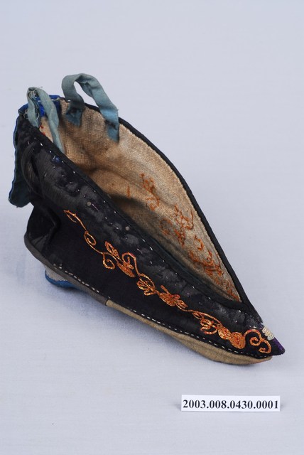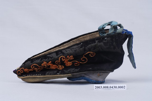 2003.008.0430 黑色緹花盤金繡弓鞋