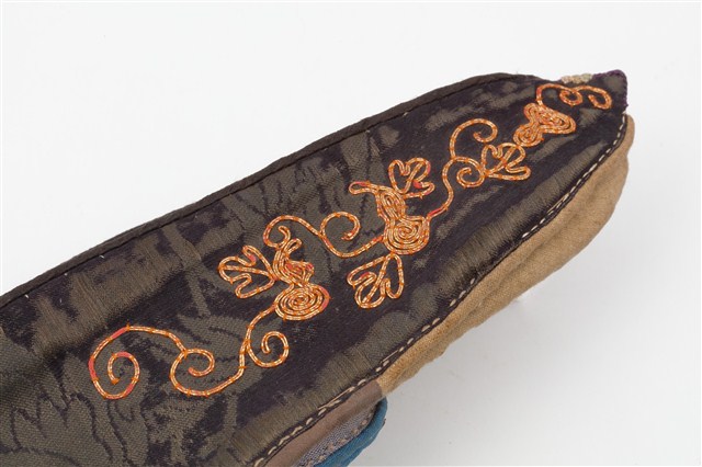 2003.008.0430.0002 黑色緹花盤金繡弓鞋右足