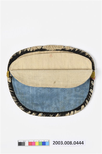 2003.008.0444 淺藍緞地人物彩繡腰圓荷包