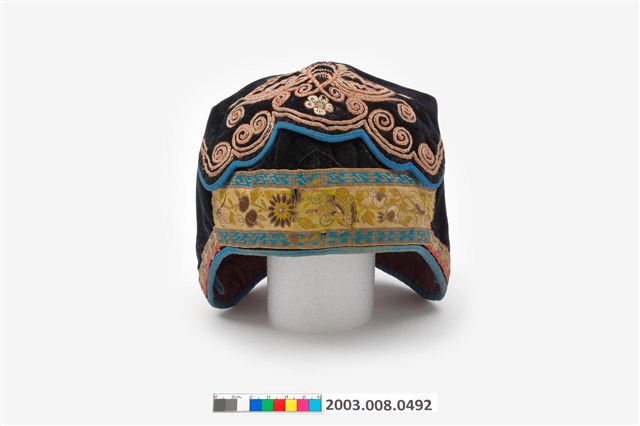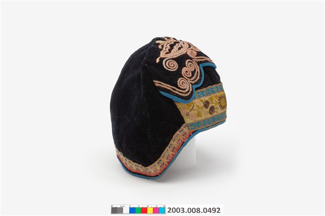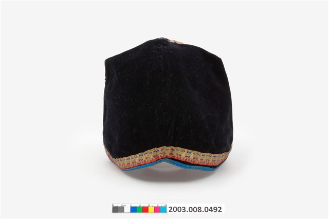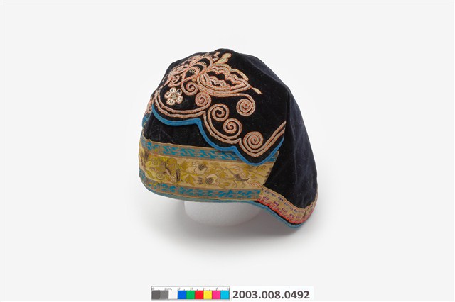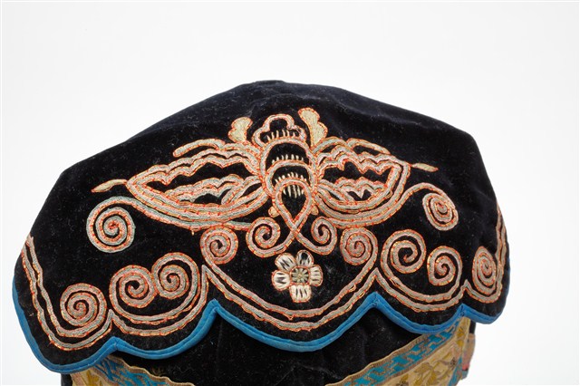 2003.008.0492 黑地盤金繡蝴蝶紋碗帽