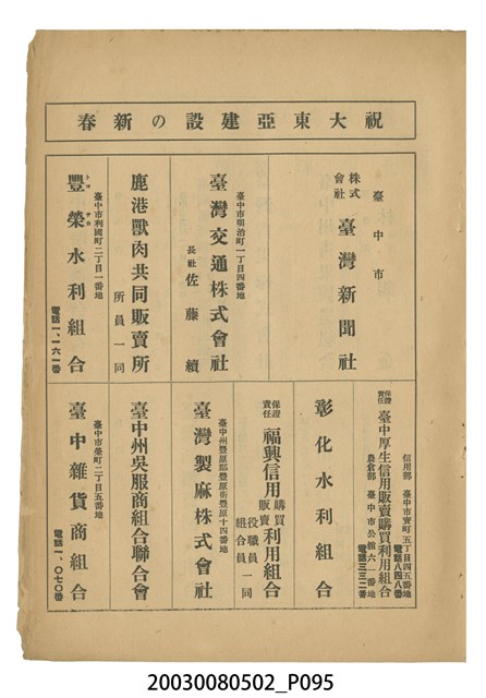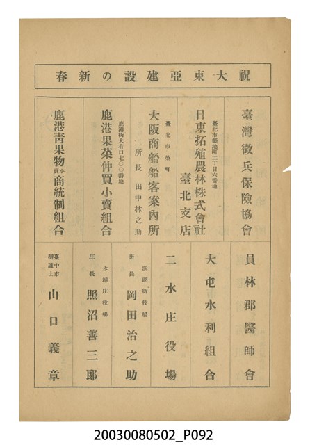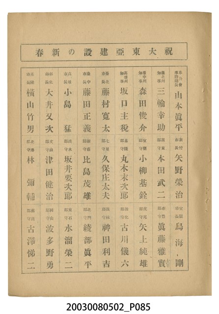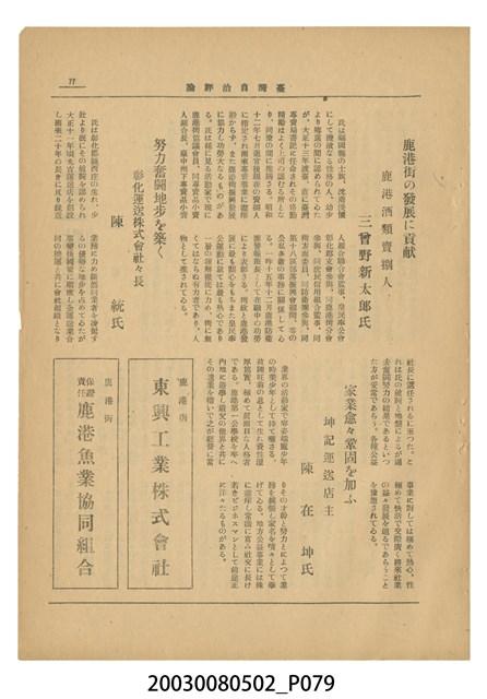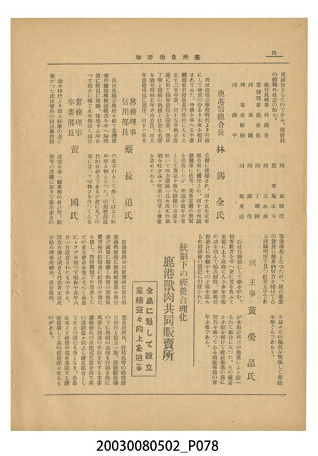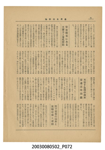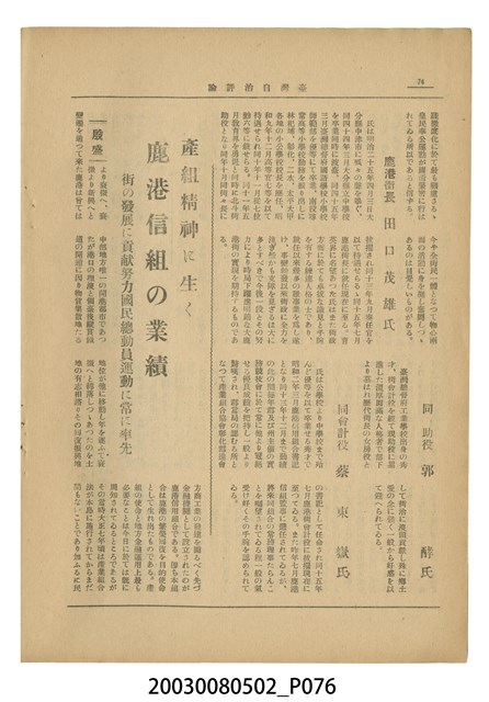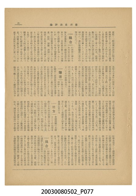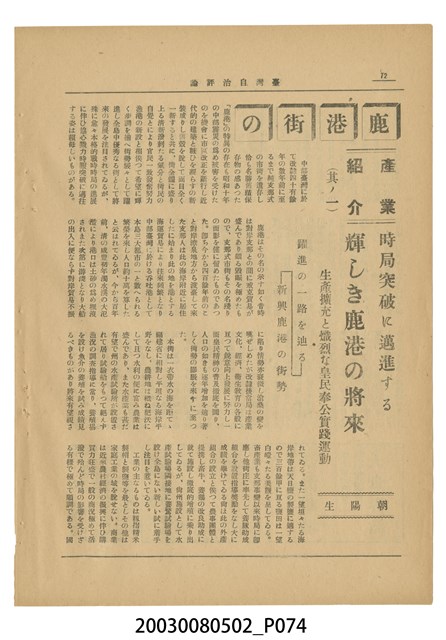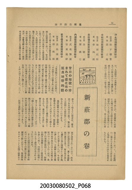 蘇景亮、解從琳、蔡濬宇,2003,日本時代(1895~1945)臺灣的地方行政制度變遷之研究,政治學學報,創刊號:169-188。