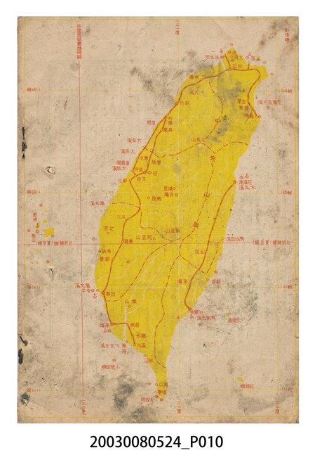 1.本件為「昭和十二年《臺灣民曆》」,右翻,共有二種裝訂痕跡,「二釘裝訂」釘在書本的近書溝的附近、「孔裝」打洞在近書溝的附近,封面四邊摺痕嚴重,左上角破損嚴重。以太極、星象、雲圖等作為封面,封面中央「昭和十二年臺灣民曆」九字,以紅色雙框線,框以白底紅字呈現。