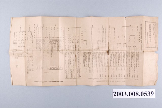 1.本物件為「臺灣總督府民政部殖產局出版《臺灣病蟲害驅除便覽》」,為記錄臺灣作物蟲害的說明便覽,可展開,正面文字為「殖產局出版第八○號、臺灣病蟲害驅除便覽、臺灣總督府民政部殖產局」,左下蓋有一個章。展開後的內容分為兩部分,第一部分為「臺灣重要農作物病蟲害」,其下分三部分,第一記錄了稻、甘蔗、甘藷與柑橘的害蟲檢索表,第二為稻和甘蔗的螟蟲比較表,第三部分則為稻和甘蔗的病害檢索表;第二部分為「驅除豫防劑」,列有瓦斯燻蒸與藥劑兩種預防方法所需的劑量表。