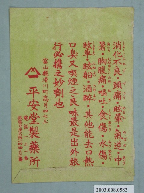 2003.008.0582 平安堂「平安丹」藥品包裝袋