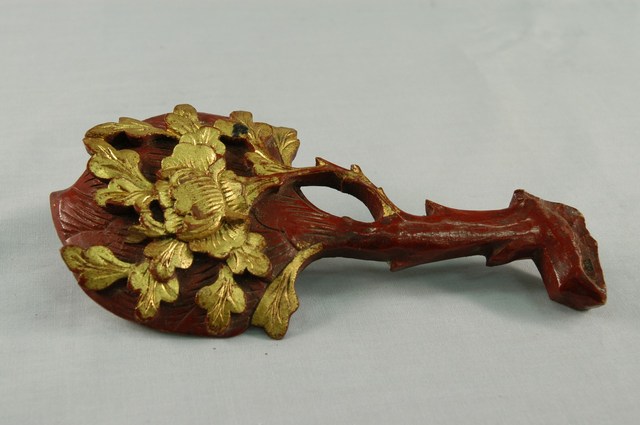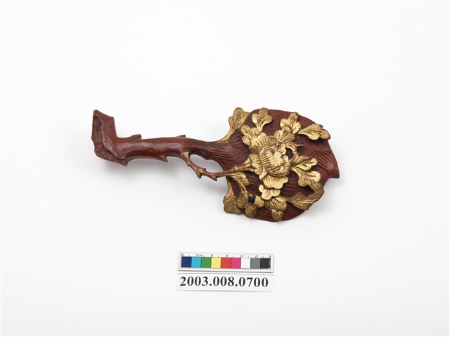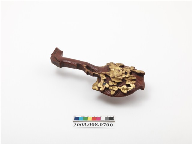 2003.008.0700 牡丹紋桃型朱漆飯匙