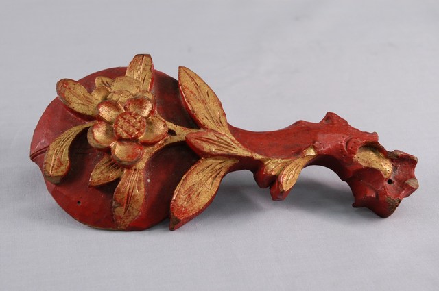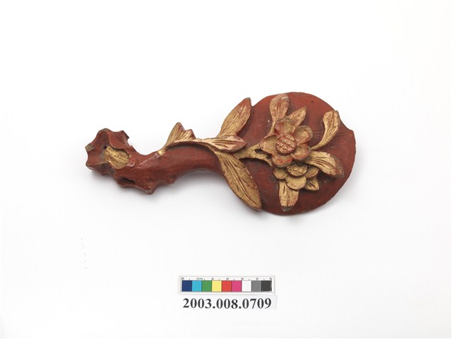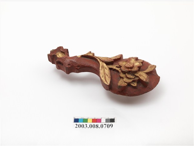 2003.008.0709 花葉紋桃型朱漆飯匙