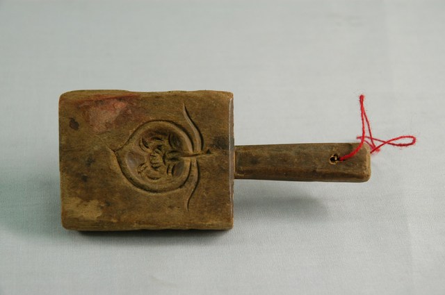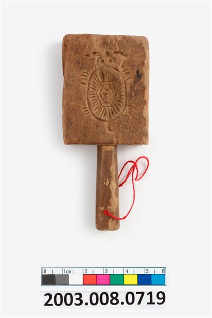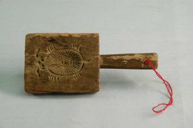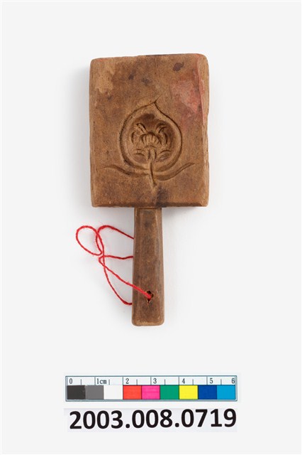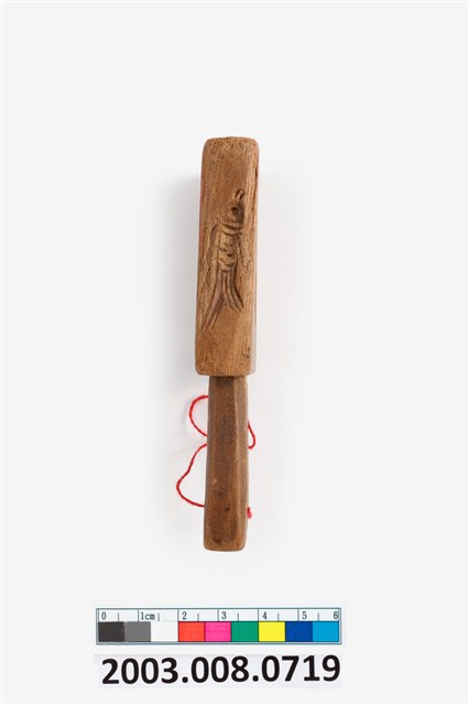 2003.008.0719 長方形四面雕龜桃連錢魚紋小型帶柄粿印