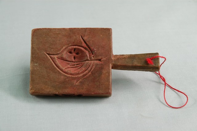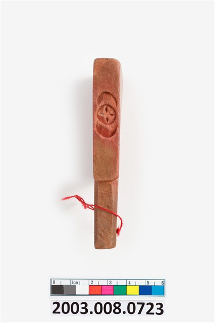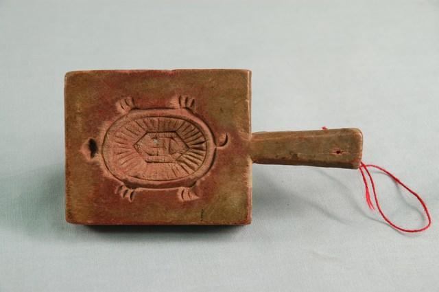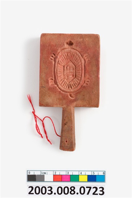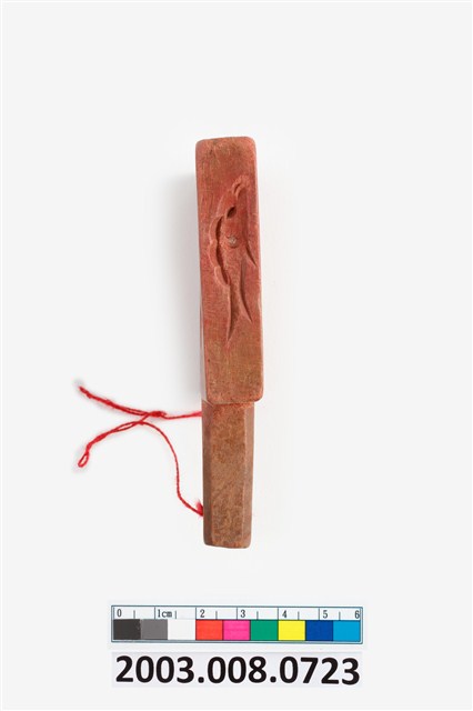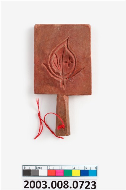 2003.008.0723 長方形四面雕雕龜桃連錢魚紋小型帶柄粿印