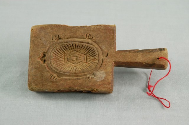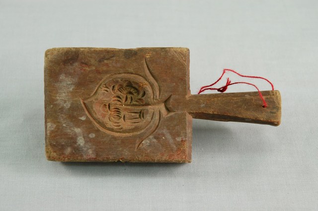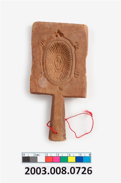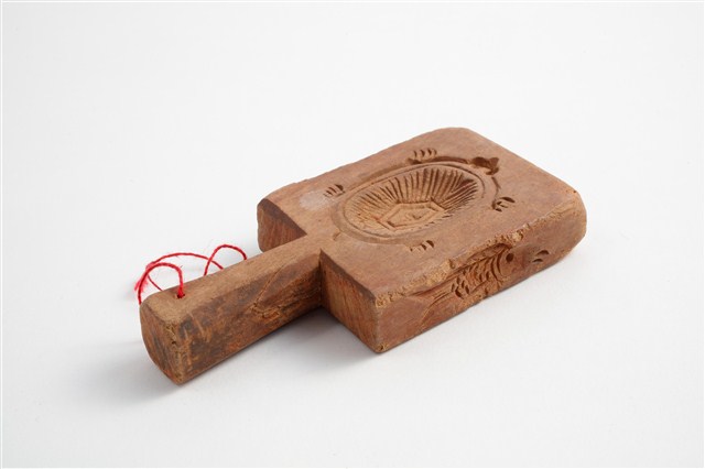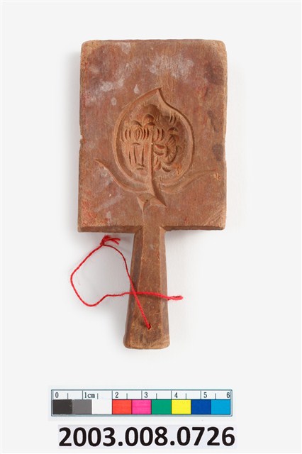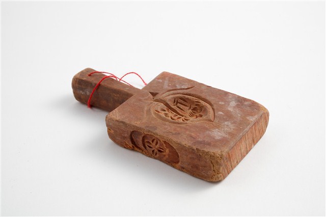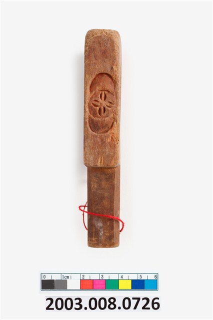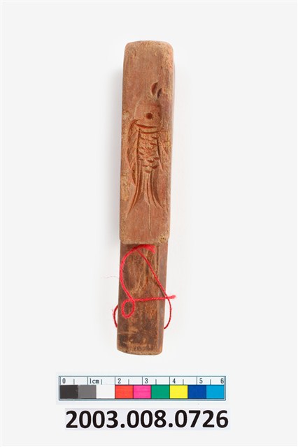 2003.008.0726 長方形四面雕雕龜桃連錢魚紋小型帶柄粿印