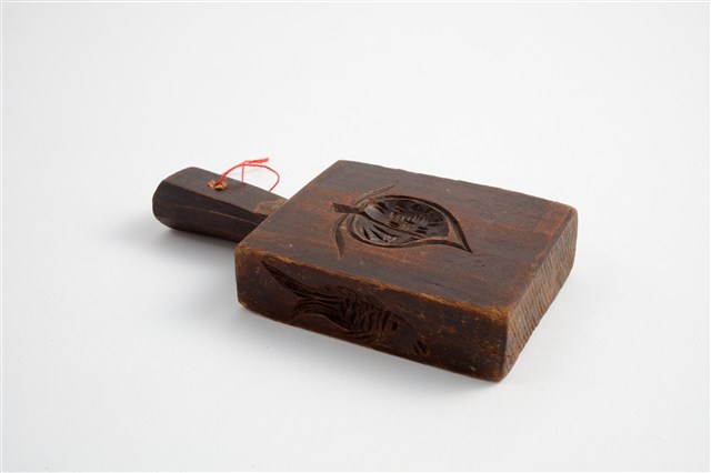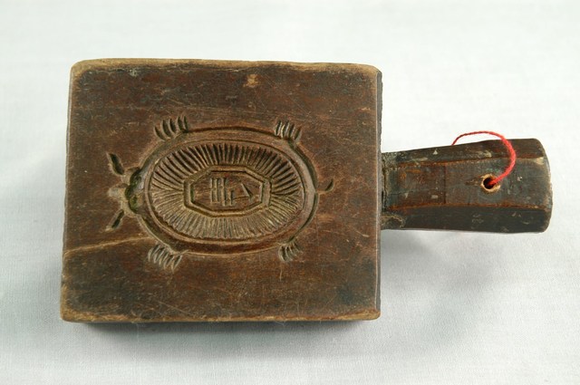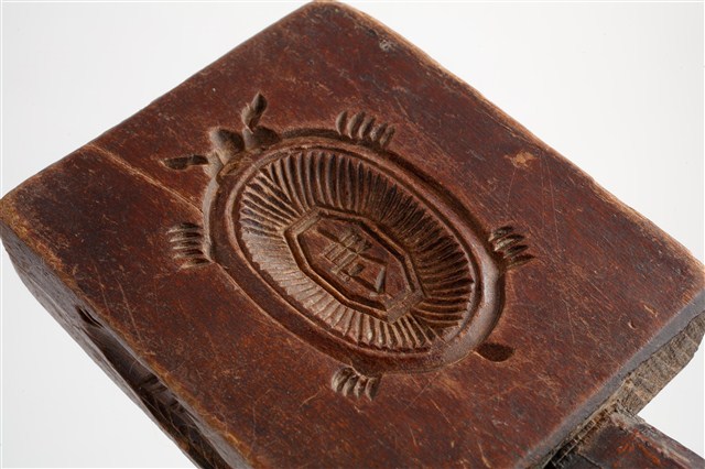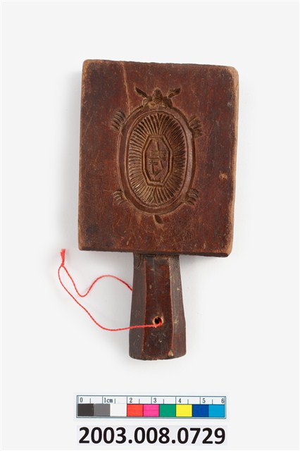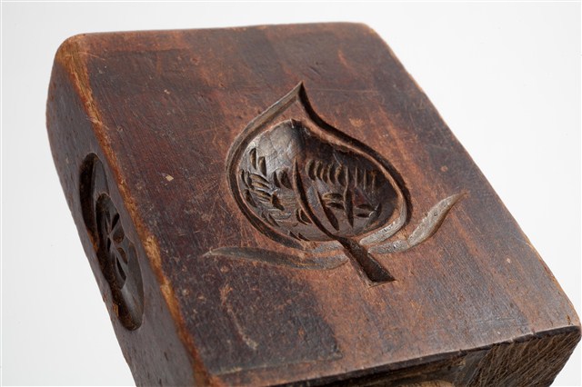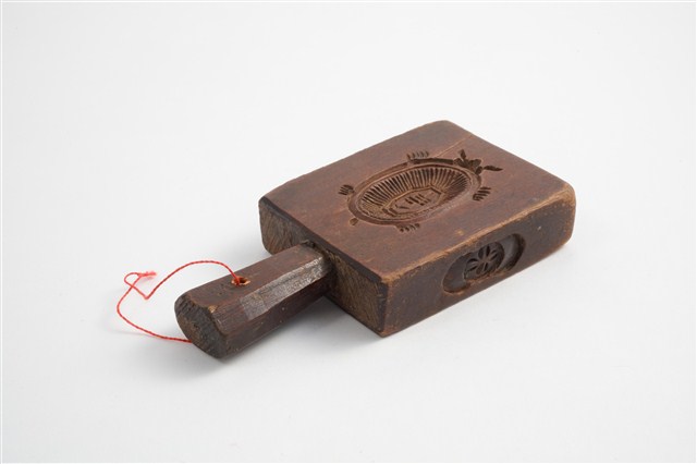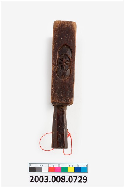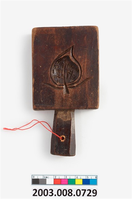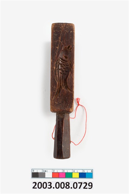 2003.008.0729 長方形四面雕龜桃連錢魚紋小型帶柄粿印