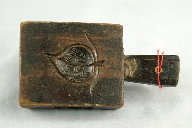 長方形四面雕龜桃連錢魚紋小型帶柄粿印