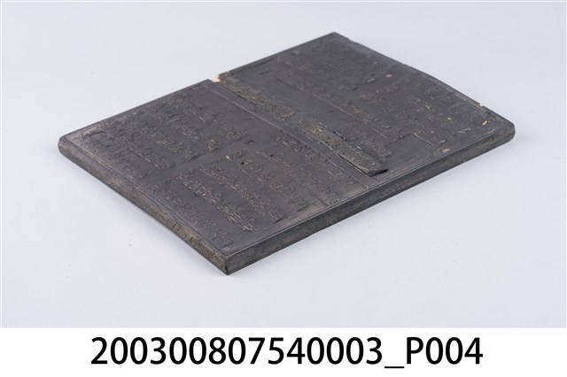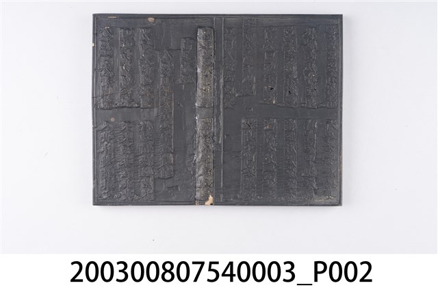 孚佑帝君即八仙裡的呂洞賓,其生平傳說不一,大致興起於北宋,在西元1000年左右,信仰極盛,後來隨全真教的發展而廣傳。本組雕版為孚佑帝君救苦救難神咒的雕版,在清代許多神明的神咒也被視為是善書而流傳,本組件雕版以陽刻方式,由其中間頁碼的刻字,應為印版的第五頁和第六頁。