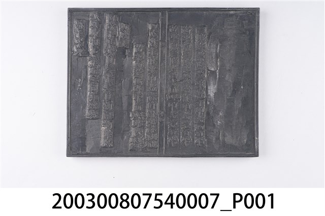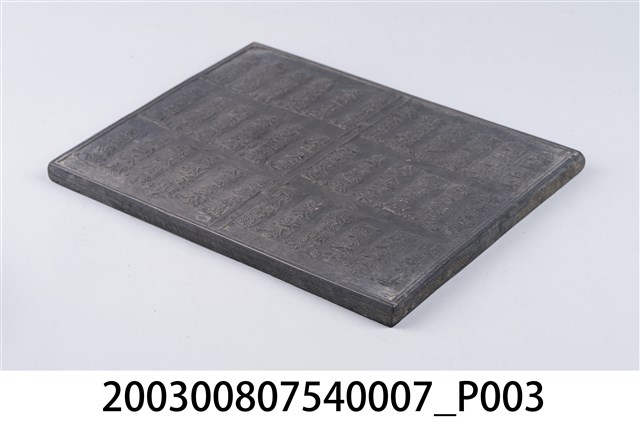 孚佑帝君即八仙裡的呂洞賓,其生平傳說不一,大致興起於北宋,在西元1000年左右,信仰極盛,後來隨全真教的發展而廣傳。本組雕版為孚佑帝君救苦救難神咒的雕版,在清代許多神明的神咒也被視為是善書而流傳,本組件雕版以陽刻方式,由其中間頁碼的刻字,應為印版的第十三頁和第十四頁。